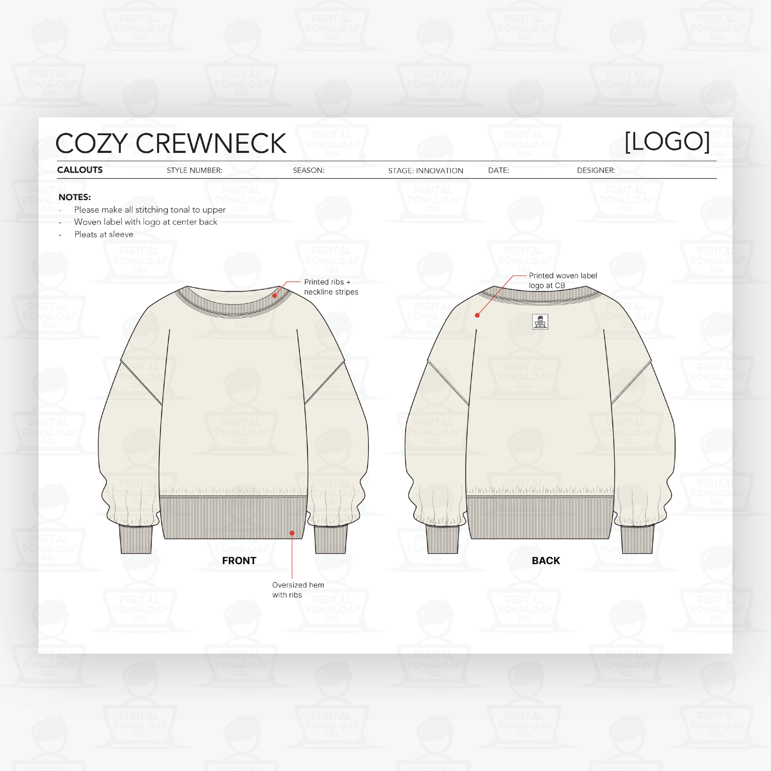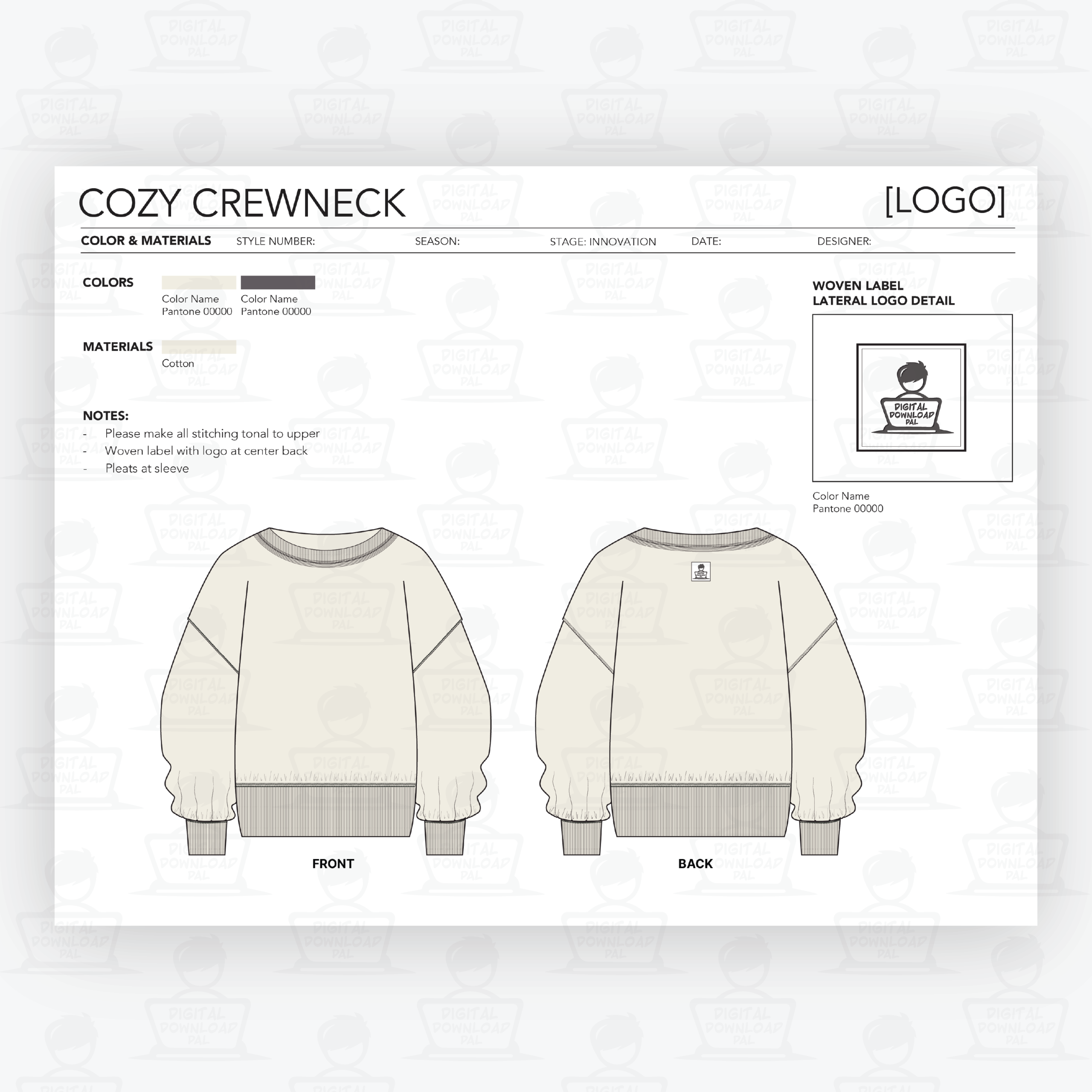 🧵 Craft the perfect Cozy Long Sleeve with this fully editable tech pack template! Featuring detailed flats and comprehensive spec sheets, this template ensures clear and precise communication with manufacturers, helping bring your designs to life with accuracy.